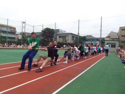 PTA競技の綱引き校長、副校長も分かれて・・・結果は1勝1敗