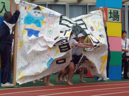 5、6年生の「中里 初夏の陣」 今年は装いも新たに騎馬戦だけでなく、様々な要素を取り入れました。
