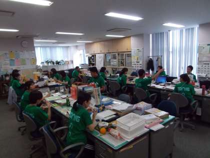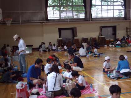 お昼休みになりました。グランド、体育館、南校舎、職員室、主事室に分かれ栄養補給!おじいちゃん、おばあちゃんとのお弁当もいいですね!