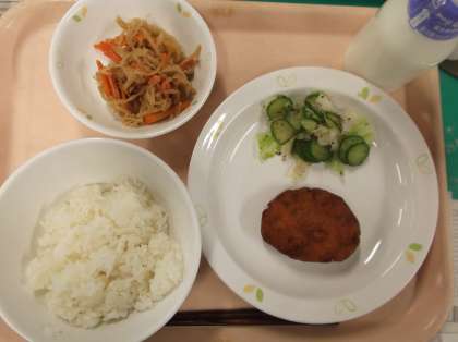 献立 ごはん ゼリーフライ 野菜のゆかりかけ 切干大根の煮物 牛乳