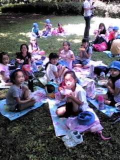 お弁当タイムはのーんびり。友だちと公園で食べるお弁当は美味しくって気持ちいいです。