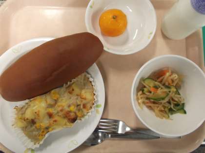 献立 ココアパン ポテトグラタン 野菜のコチジャンだれ くだもの 牛乳
