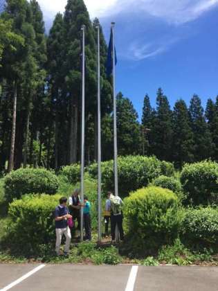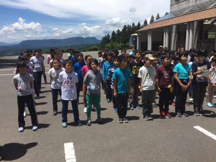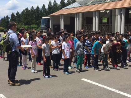 予定どおりに、川場村なかのビレジに到着しました。駒繋小学校と一緒に開室式をしました。