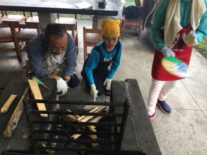 1日目の夕食は、飯盒炊さんです。みんなで協力して、カレーづくりです。