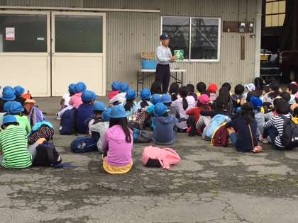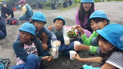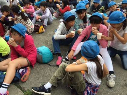 途中の宮田果樹園で、りんごやブルーベリーのお話を聞きました。その後100%りんごジュースを飲みました。濃くて美味しかったです。