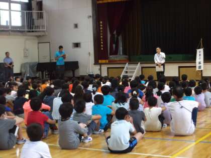 世田谷警察の協力を得て、不審者訓練がありました。子供たちは大変整然と避難ができました。対応した菱田先生は、何回かナイフで刺され・・・次回に生かしていきます。