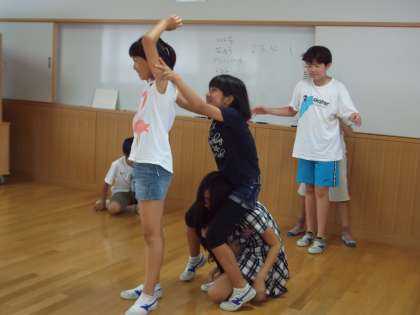 今日は、6年生の表現活動を紹介します。パブリックシアターの方からは、今までの積み重ねがある分、いろいろなことがやれるとほめていただきました。