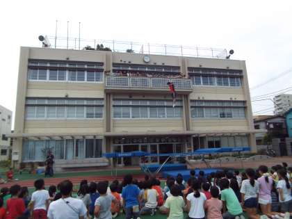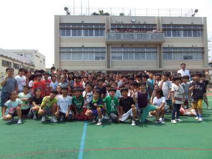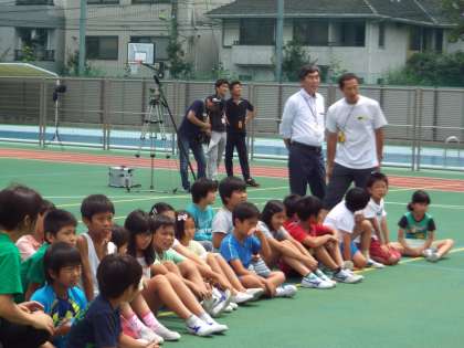 先週の取材の様子を紹介します。昼休みを利用して収録しました。3階の理科室まで選手は飛び上がっていました。凄いですね!!