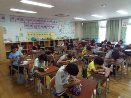 今朝の放送朝会では、校長先生からオリンピックのことについてお話があり、どんなことが楽しみかをもくもくに書きました。