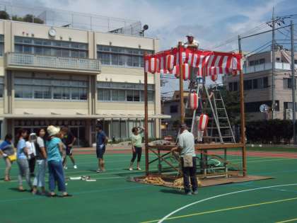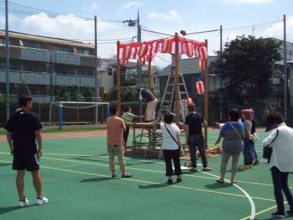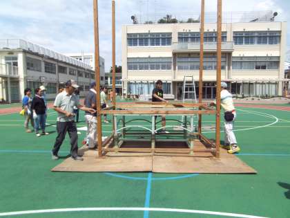 昨日、大盛況で終わった納涼子どもまつりですが、今朝は早くから残された櫓の解体がありました。林工務所の方々のご協力で無事にグランドの復旧もおわりました。本当にありあがとうございました。