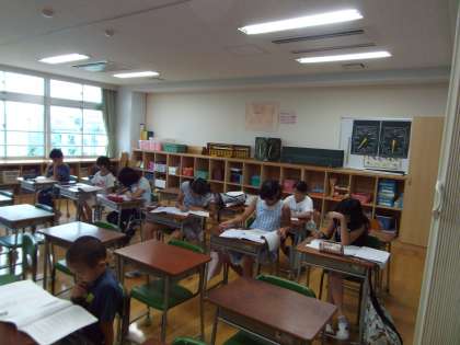 今年度からの試みサマースクール。2か所に分かれて行っていますが、みんな集中して取り組んでいます。