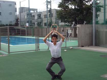 朝から暑くなっています。本日の水泳指導、実施します。昨日は残念そうだった直江先生も今日は笑顔でした!松木先生と二重丸♪
