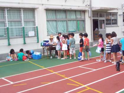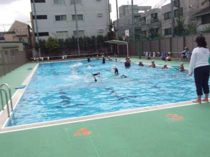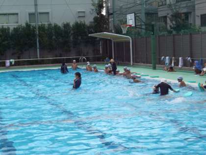 ようやく夏らしい日差しになってきました。気持ちよさそうに泳いでいます。少人数の強みを生かした水泳指導が行われています。低学年の受付も始まりました。