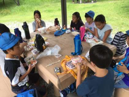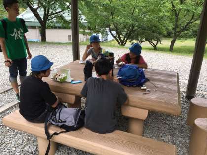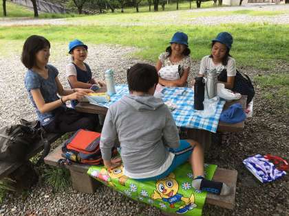 銅親水公園で昼食です。朝が早かったのでお腹がすきました。
