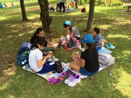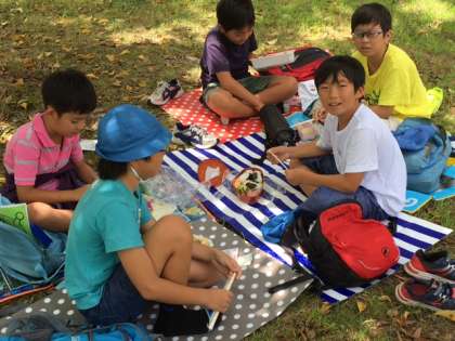 旧開智学校の見学の後は、近くの公園で昼食です。美味しく食べました。