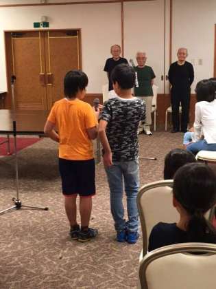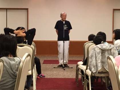 夕食、入浴後に、卒業生の三土会の皆さんの「疎開体験のお話」を聞きました。今とは違う当時の小学生の姿を想像しながら聞きました。改めて、今の恵まれた環境に感謝したいです。