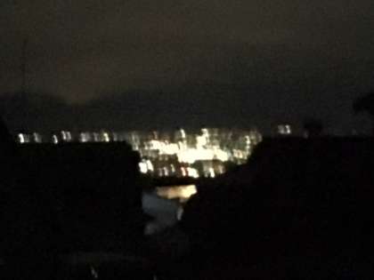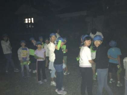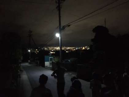 星空観察のため、外に出ましたが残念ながら曇っていて星が見えませんでした。代わりに希望者で付近の散策をしました。松本市内の夜景が綺麗でした。