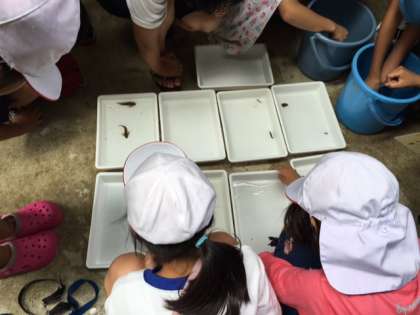 6年生の活動の続きです。色々な種類の生き物を採取できました。