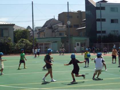 久しぶりに会う友達と元気に外遊びを楽しんでいました。