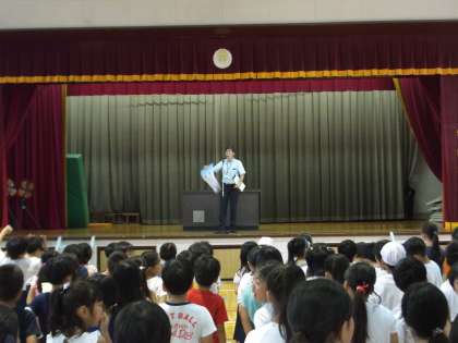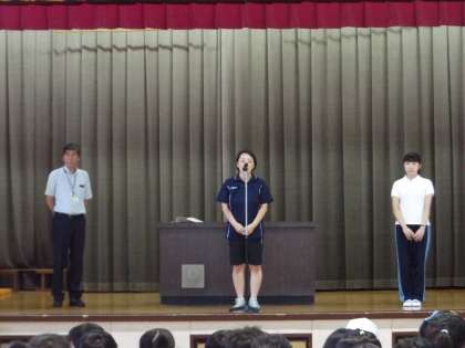 今朝の全校朝会では、「勇気」について講話がありました。新しい学校包括支援員の平野先生とボランティアの山崎さんの紹介がありました。