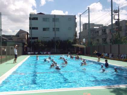 振りさす日差しが痛いぐらいの中、中学年は久しぶりのプールに入りました。今日は、とても気持ちがよさそうです。