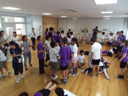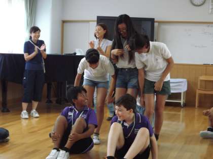 世田谷パブリックシアターの方々にご協力いただき、6年生とバンバリーの子どもたちで表現活動を行いました。グループになり、1つのお題について、片言の英語や身振り手振りで意思疎通を図りながら活動していました。なかなか微笑ましかったです(^^)