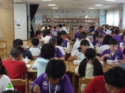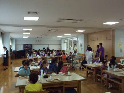 給食は、5,6年生とバンバリーの子たち、相撲部の生徒さんは1〜4年生の教室で食べました。