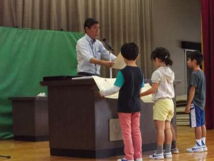 今朝の講話は、公共心についてでした。校長先生からのお話のあと、消防写生会、歯のポスター、ダンスコンクールの3つの表彰がありました。さらに5年生の女子2名がダンスを披露してくれました。1週間の始まりが、気持ちよく切れました。表彰されたみなさん、おめでとうございます。