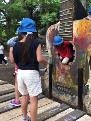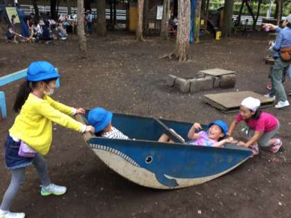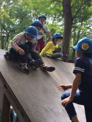 ドングリや落ち葉拾いの後は、プレイパークや築山で遊びました。