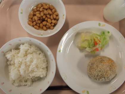 献立 ごはん 肉じゃがコロッケ ひとしお野菜 ぶどう豆 牛乳