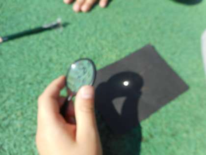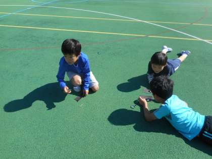 虫眼鏡で日光を集めて紙を焦がす実験をしました。子どもたちに夢中に取り組んでいました。