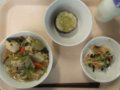 献立 ちゃんこうどん 野菜のコチジャンだれ 焼きいも 牛乳