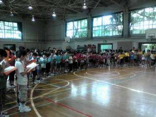 今日は5年生がリーダーとなり全校で詩の朝会を開きました。