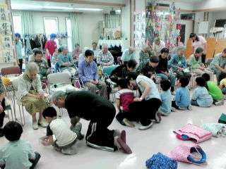 子ども達が「ふるさと」を歌い始めるとおじいちゃん、おばあちゃんも一緒に歌ってくれました。