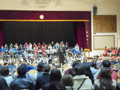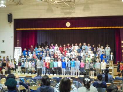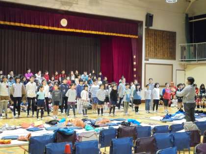 1日目も後半し入りました。校長先生のあいさつに続いて、中里小合唱クラブの合唱と、全校合唱がありました。