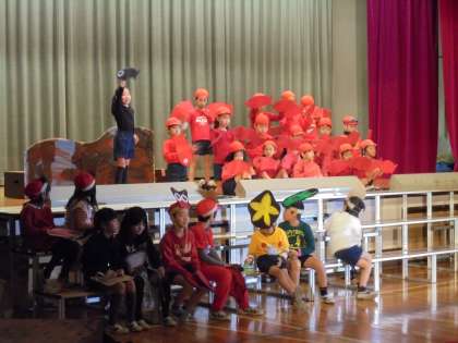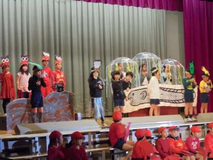 2年生「スイミー」台詞もしっかり言え、とても上手に演技ができました。