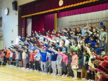 中里小合唱クラブの後に全校合唱を行いました。合唱クラブは12月18日(日)世田谷区小学校合唱交歓会に出場します。