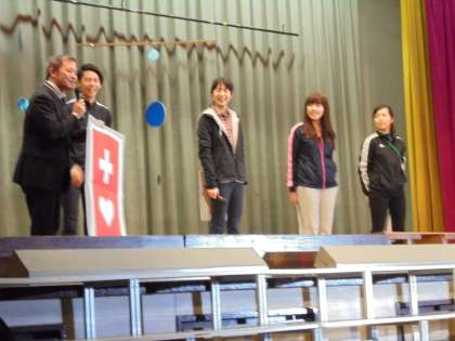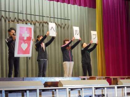 演目の間で、「ヘルプカード」の紹介をしました。いつも中里のために尽力いただいている学生さんに出演してもらいました。