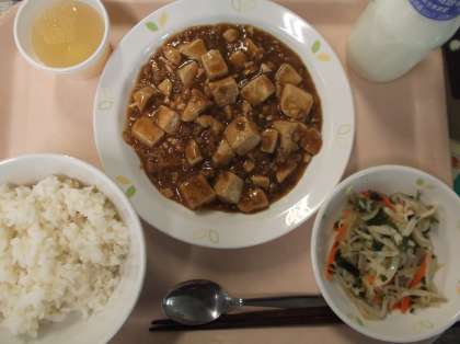 献立 麦ごはん 四川麻婆豆腐 かみかみ塩ナムル りんごゼリー 牛乳
