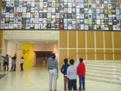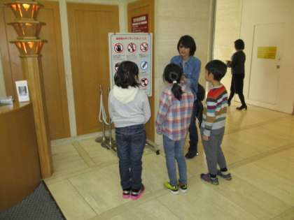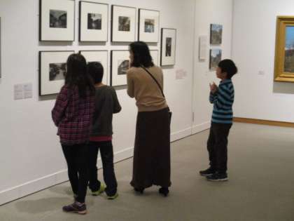 ボランティアの方の説明を聞きながら館内の作品を丁寧にみています。