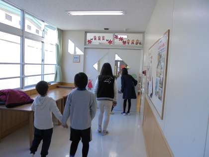 学校説明会と来年の6年生になる5年生が未就学児を学校探検に連れていき、最後に歌と演奏を披露しました。また、説明会終了後は体育館でスポーツ教室の体験も行われました。