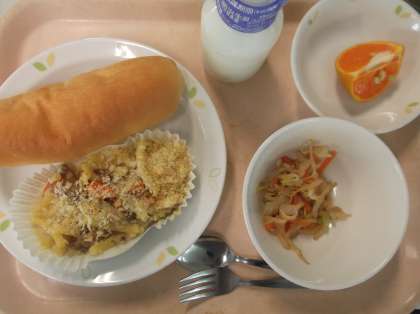 献立 米粉パン マカロニグラタン もやしサラダ 早香 牛乳