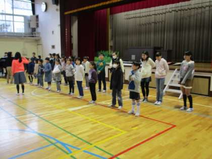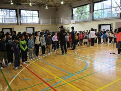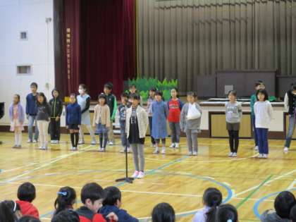 15日朝の活動は、音楽集会でした。まず初めに合唱部の皆さんが18日の合唱交歓会で発表する「星に願いを」を歌ってくれました。続いて全校で「We Wish you A Merry Christmas」を練習しました。