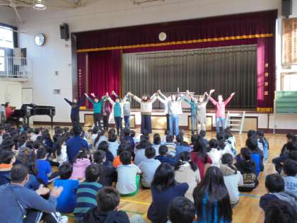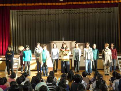今朝の全校朝会は、校長先生の講和と表彰のあと、恒例のPTAコーラスの方々の歌声を聴きました。週の始まりが気持ちよくさわやかにスタートしました。素敵な歌と踊りをありがとうございました。