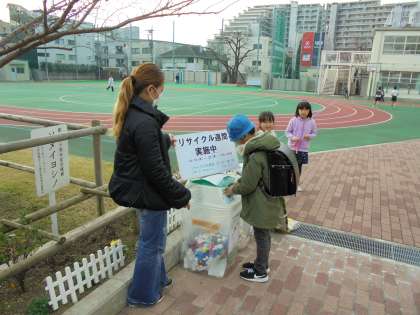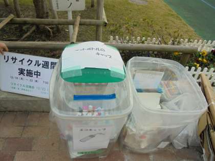 今週はリサイクル週間です。古紙やペットボトルのふた、牛乳パックなどを回収しています。よろしくお願いいたします。