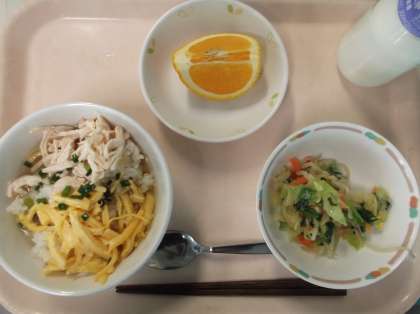 献立 鶏飯 みそドレサラダ スィートスプリング 牛乳