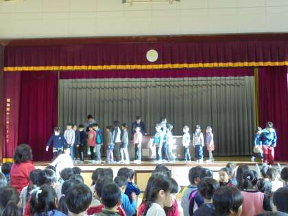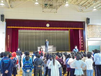 今朝の校長講話は、今日から始まるユニセフ募金やマラソン週間についてお話がありました。また、区展覧会に出展された子とサッカーの表彰がありました。