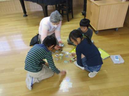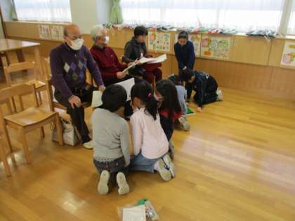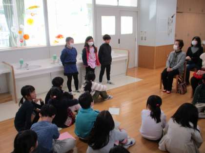 27日、2年生ではおじいさん、おばあさんをお呼びしての「ふれあい給食」の取組を行いました。給食に先立って、4校時には、それぞれの班ごとに担当するおじいさん、おばあさん方に楽しんでもらえるように考えて準備した遊びを通して交流しました。