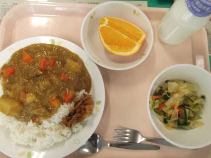 献立 カレーライス 福神漬け 寒天サラダ くだもの 牛乳