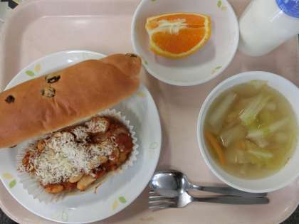 献立 ぶどうパン カスレ 白菜のスープ くだもの 牛乳